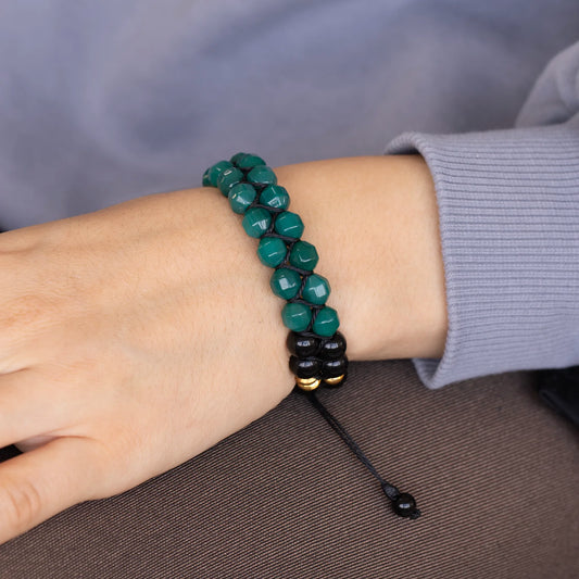 Natural Amazonite & Black Onyx Beaded Double Row Macrame Bracelet