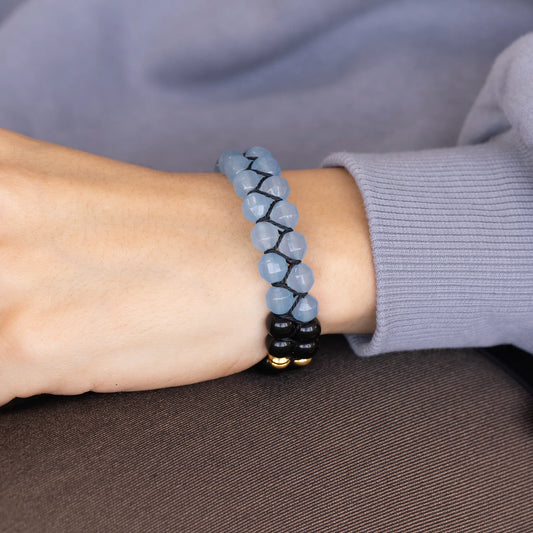 Natural Aquamarine & Black Onyx Beaded Double Row Macrame Bracelet