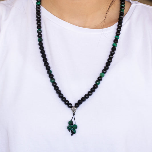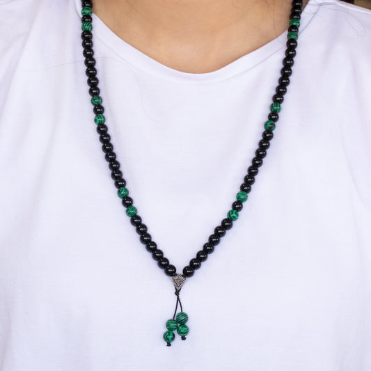 Malachite & Black Onyx Beaded 108 Mala & Rosary Necklace