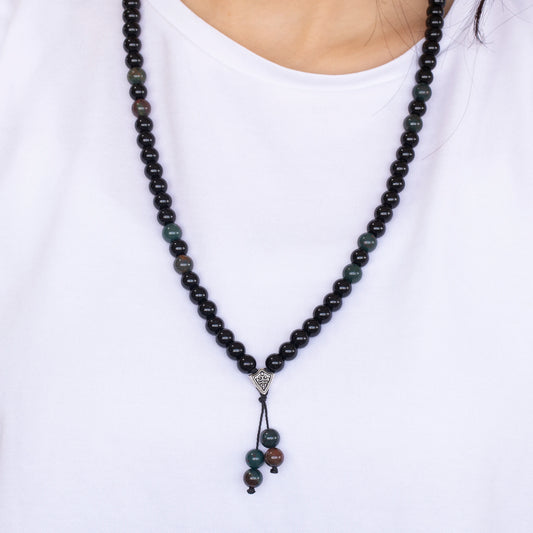 Natural Bloodstone & Black Onyx Beaded 108 Mala & Rosary Necklace