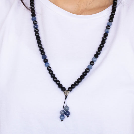 Natural Blue Aventurine & Black Onyx Beaded 108 Mala & Rosary Necklace