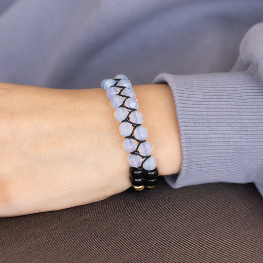 Natural Opalite & Black Onyx Beaded Double Row Macrame Bracelet