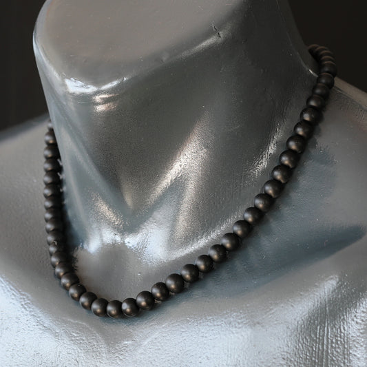 Natural Matte Black Onyx Beaded Clasp Choker Necklace