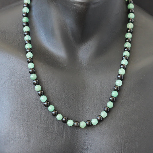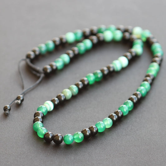 Natural Green Agate & Black Onyx Beaded Macrame Choker Necklace