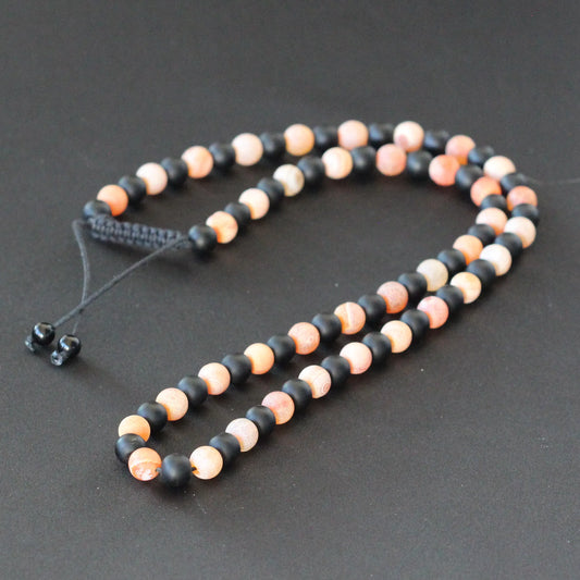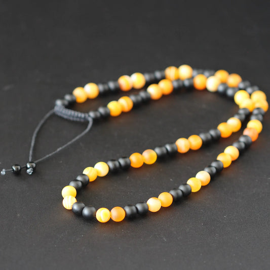 Natural Matte Orange Agate & Matte Black Onyx Beaded Macrame Choker Necklace