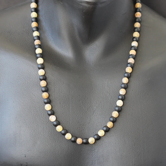 Natural Crackled Matte Yellow Agate & Matte Black Onyx Beaded Macrame Choker Necklace