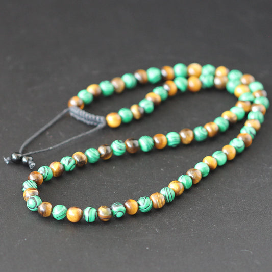 Natural Tiger Eye & Malachite Beaded Macrame Choker Necklace