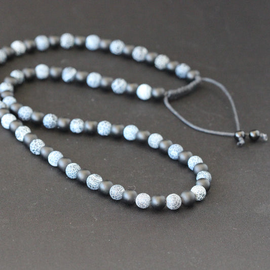 Natural Crackled Matte Blue Agate & Matte Black Onyx Beaded Macrame Choker Necklace