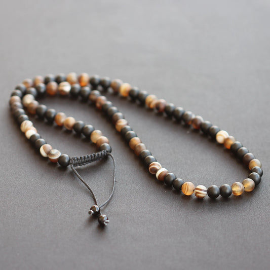 Natural Matte Brown Agate & Matte Black Onyx Beaded Macrame Choker Necklace