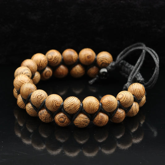 Natural Sandalwood Beaded Double Row Macrame Bracelet