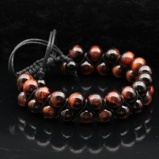 Natural Red Tiger Eye Beaded Double Row Macrame Bracelet