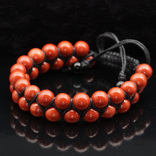 Natural Red Jasper Beaded Double Row Macrame Bracelet
