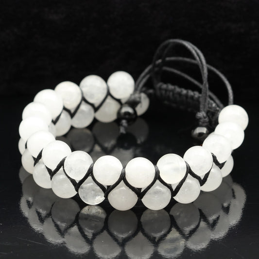 Natural Selenite Beaded Double Row Macrame Bracelet