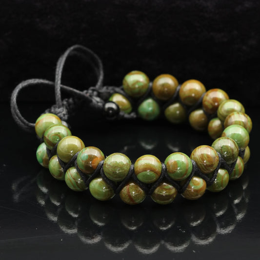 Natural Green Jasper Beaded Double Row Macrame Bracelet