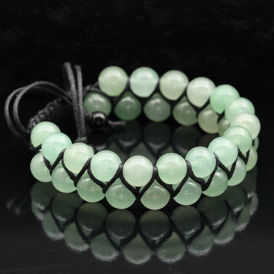 Natural Green Aventurine Beaded Double Row Macrame Bracelet