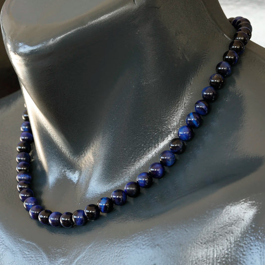 Natural Dark Blue Tiger Eye Beaded Clasp Choker Necklace
