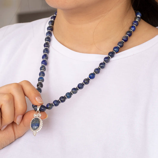 Natural Lapis Lazuli Silver Pendant, Natural Lapis Lazuli Beaded Clasp Necklace