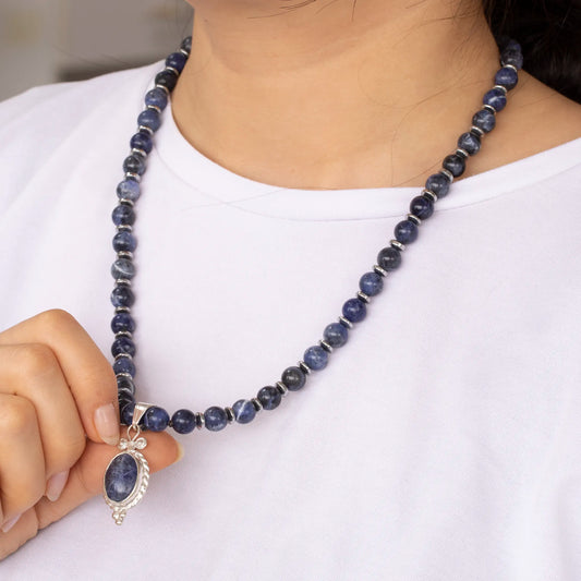 Natural Sodalite Silver Pendant, Natural Sodalite Beaded Clasp Necklace
