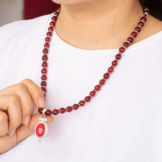 Natural Carnelian Silver Pendant, Natural Carnelian Agate Beaded Clasp Necklace