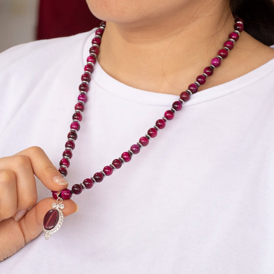 Natural Pink Tiger Eye Silver Pendant, Natural Pink Tiger Eye Beaded Clasp Necklace