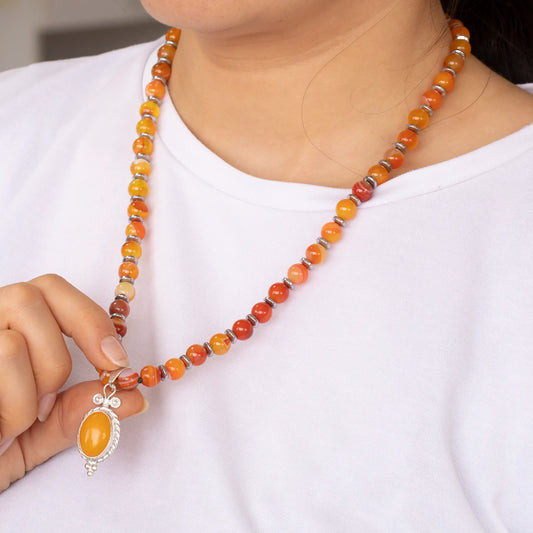 Natural Orange Agate Silver Pendant, Natural Orange Agate Beaded Clasp Necklace