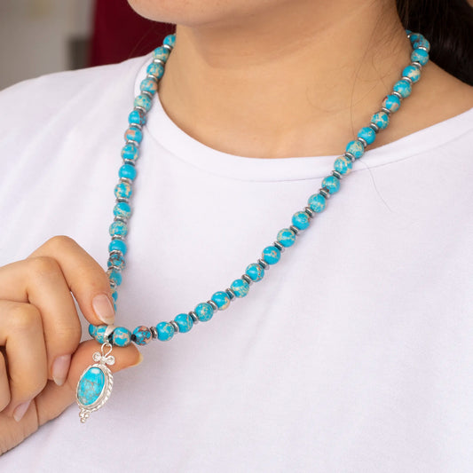 Natural Blue Imperial Jasper Silver Pendant, Natural Blue Imperial Jasper Beaded Clasp Necklace
