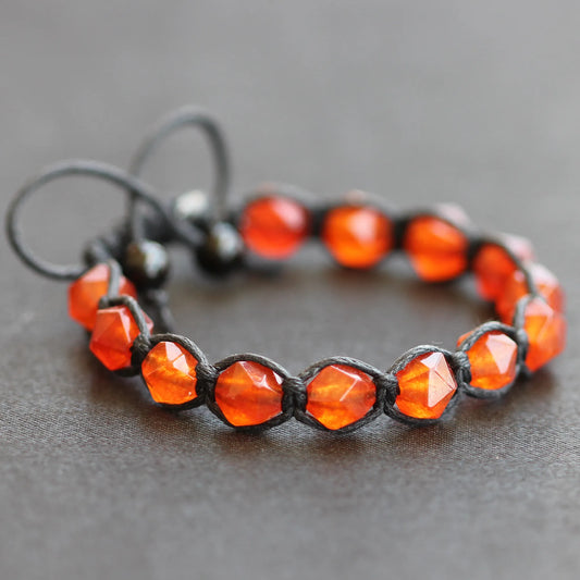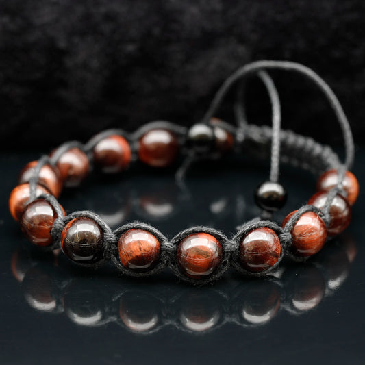 Natural Red Tiger Eye Beaded Macrame Bracelet