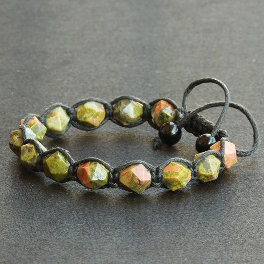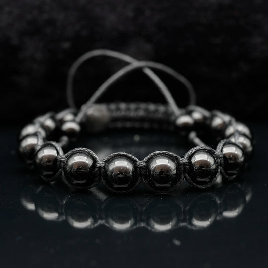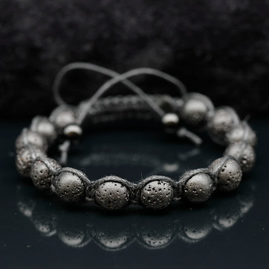 Natural Black Lava Stone Beaded Macrame Bracelet