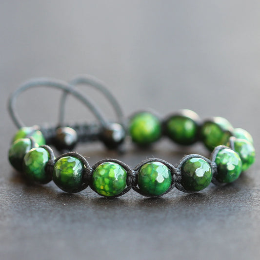 Natural Green Crackle Agate Beaded Clasp Bracelet