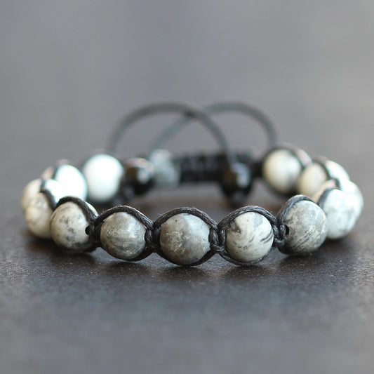 Natural Howlite & Gray Picasso Jasper Beaded Macrame Bracelet