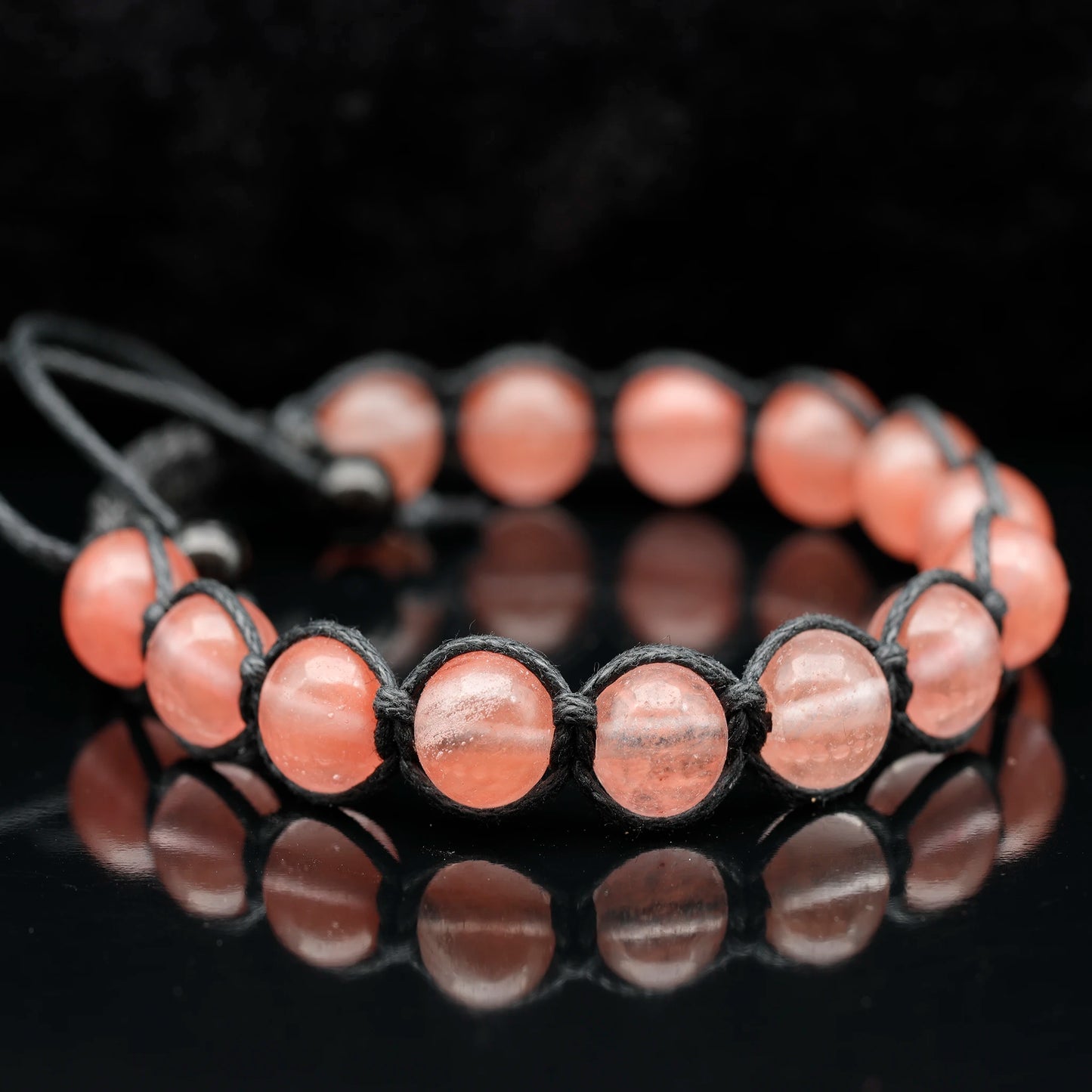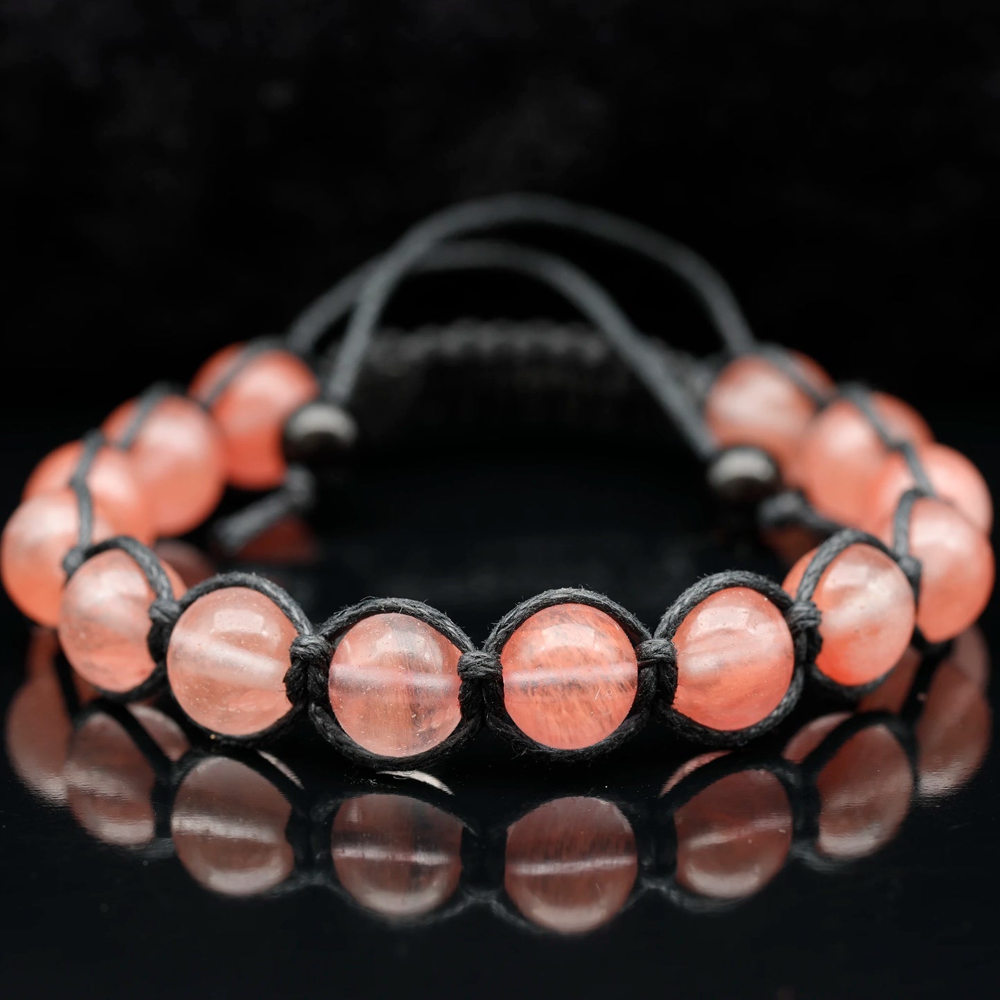 Pulsera de macramé con cuentas de cuarzo cereza natural