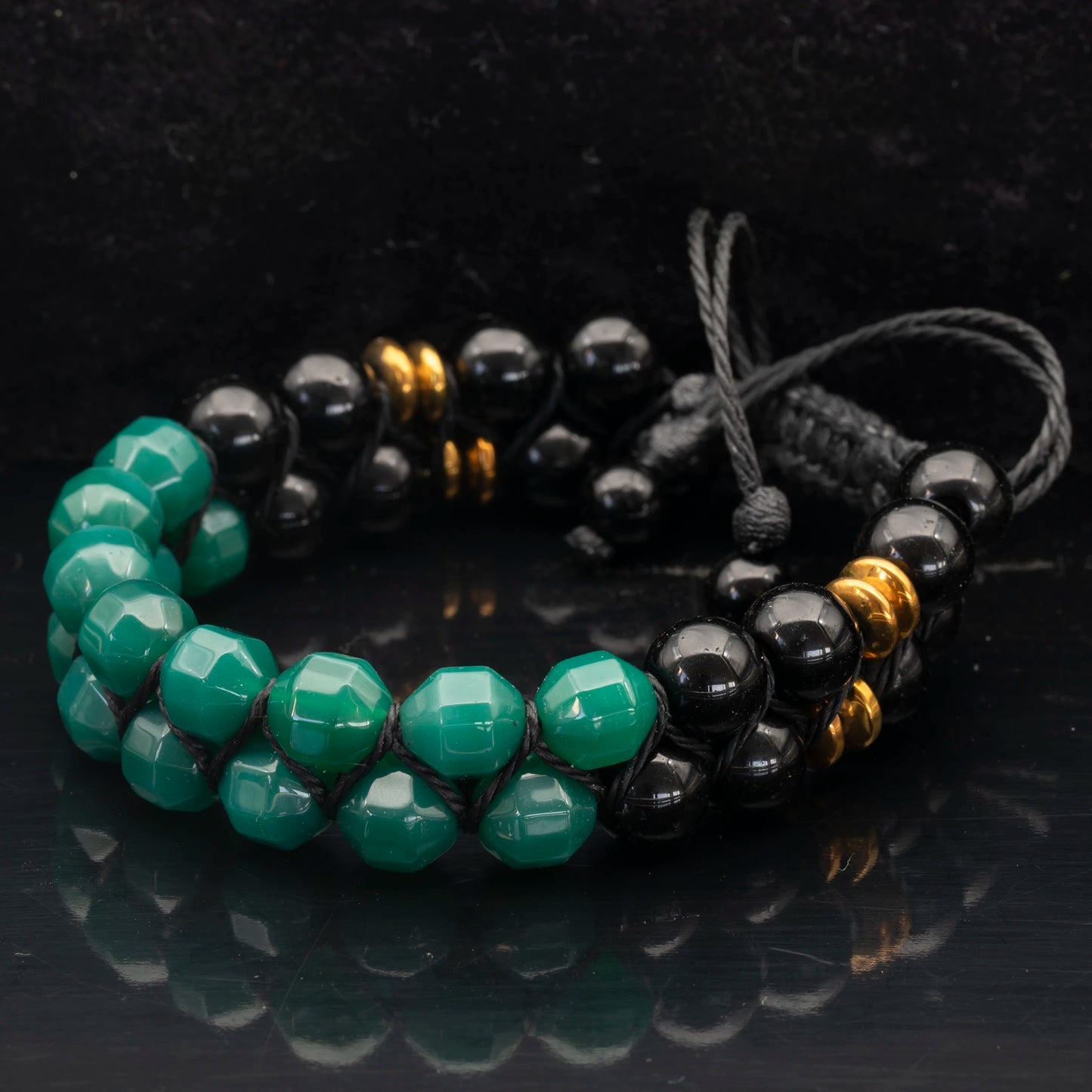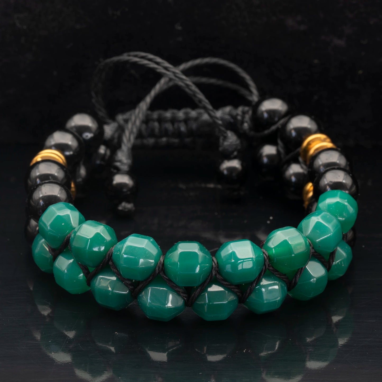 Pulsera de macramé de doble hilera con cuentas de ágata verde natural (Taslak Full İkili)