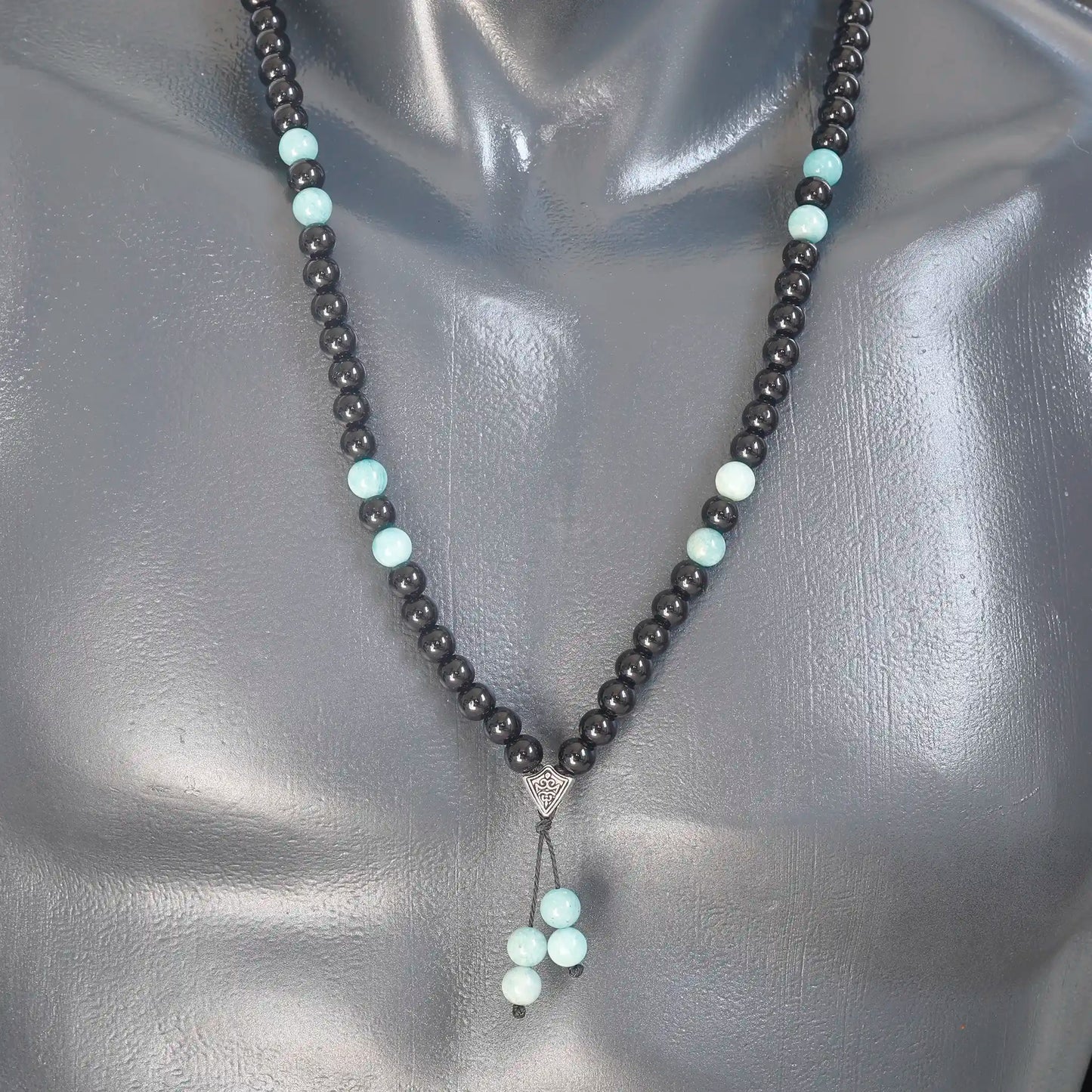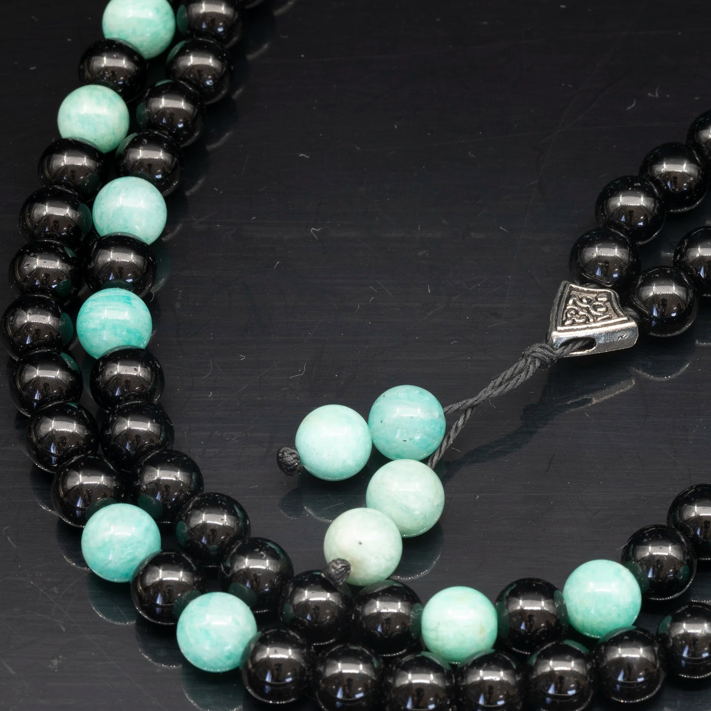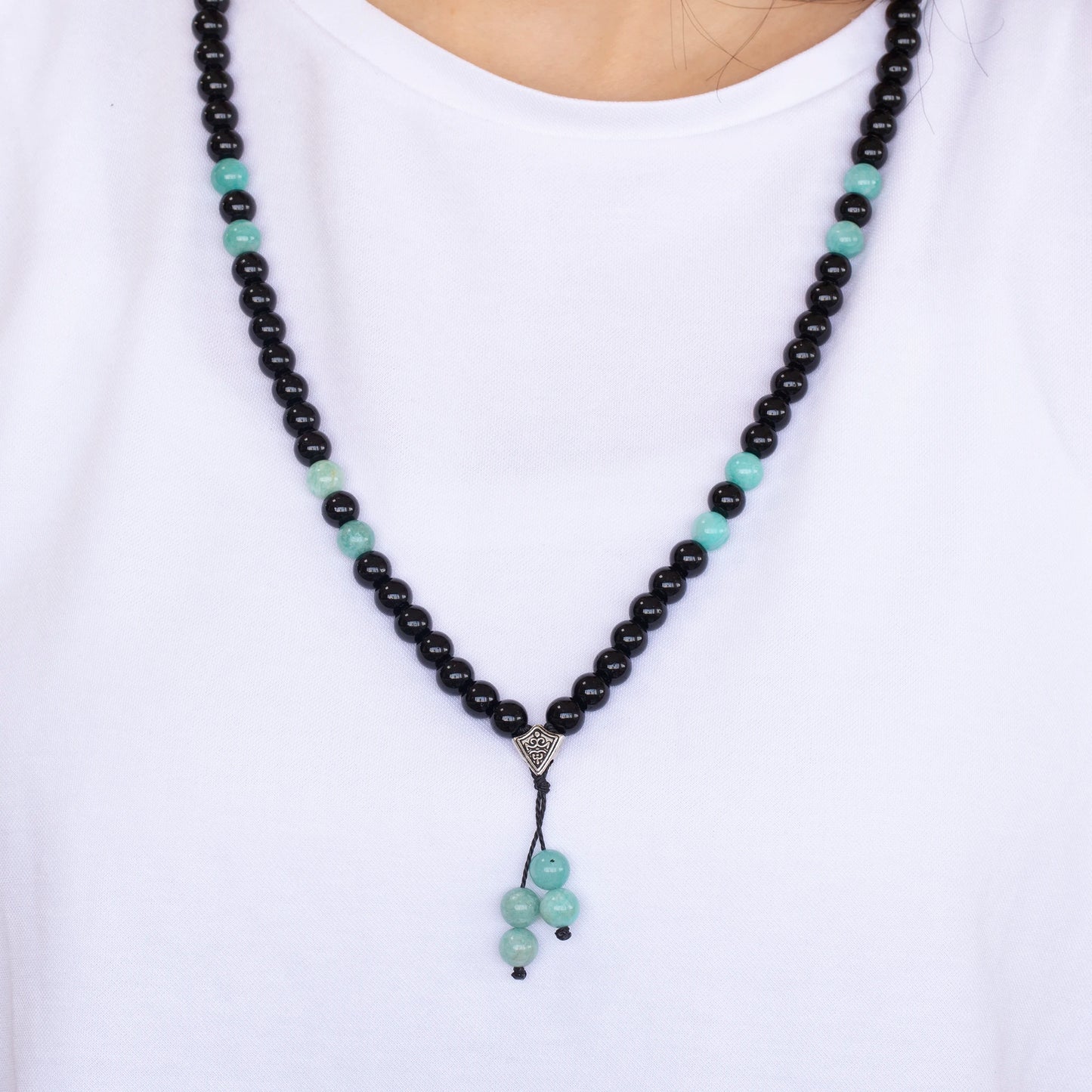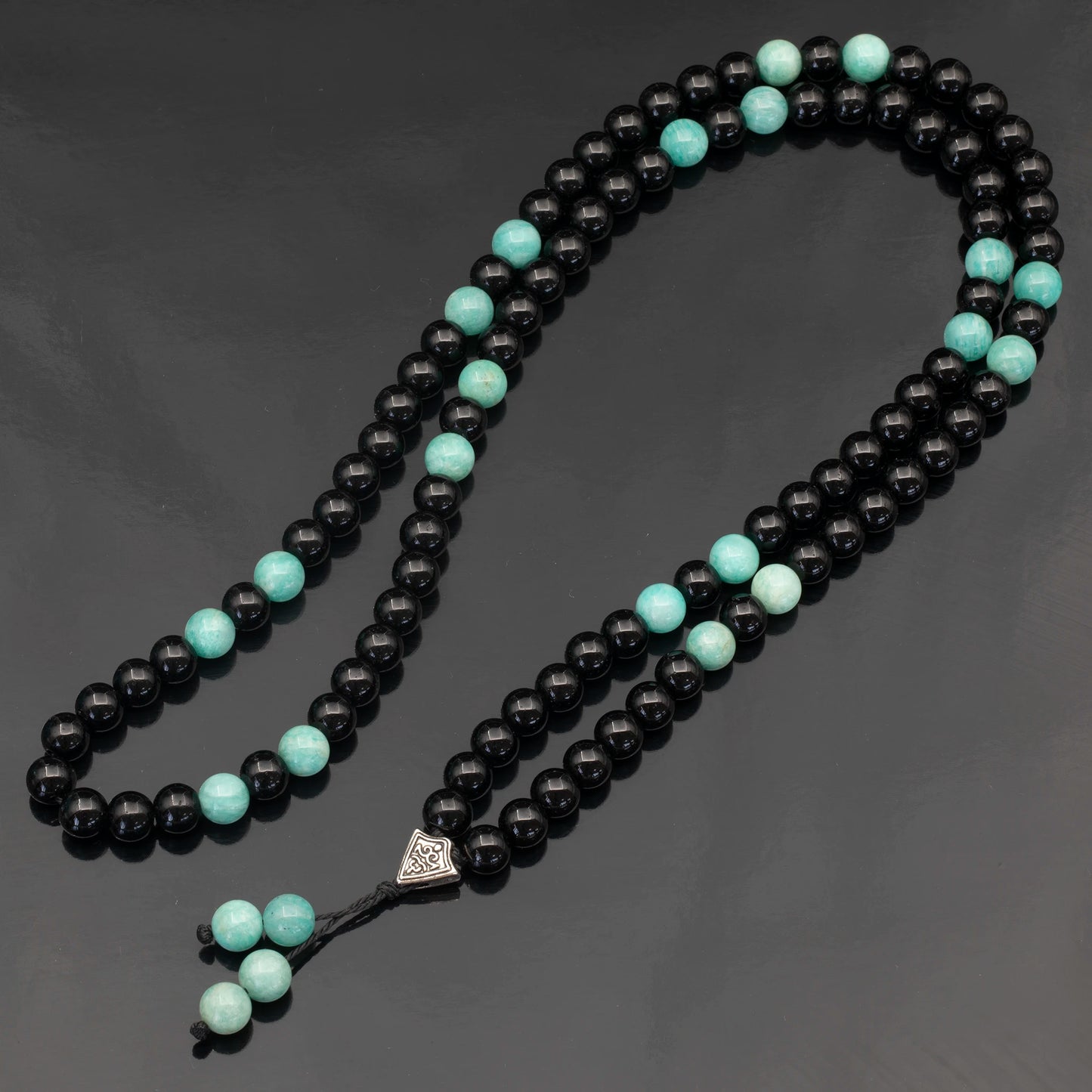 Natural Amazonite & Black Onyx Beaded 108 Mala & Rosary Necklace