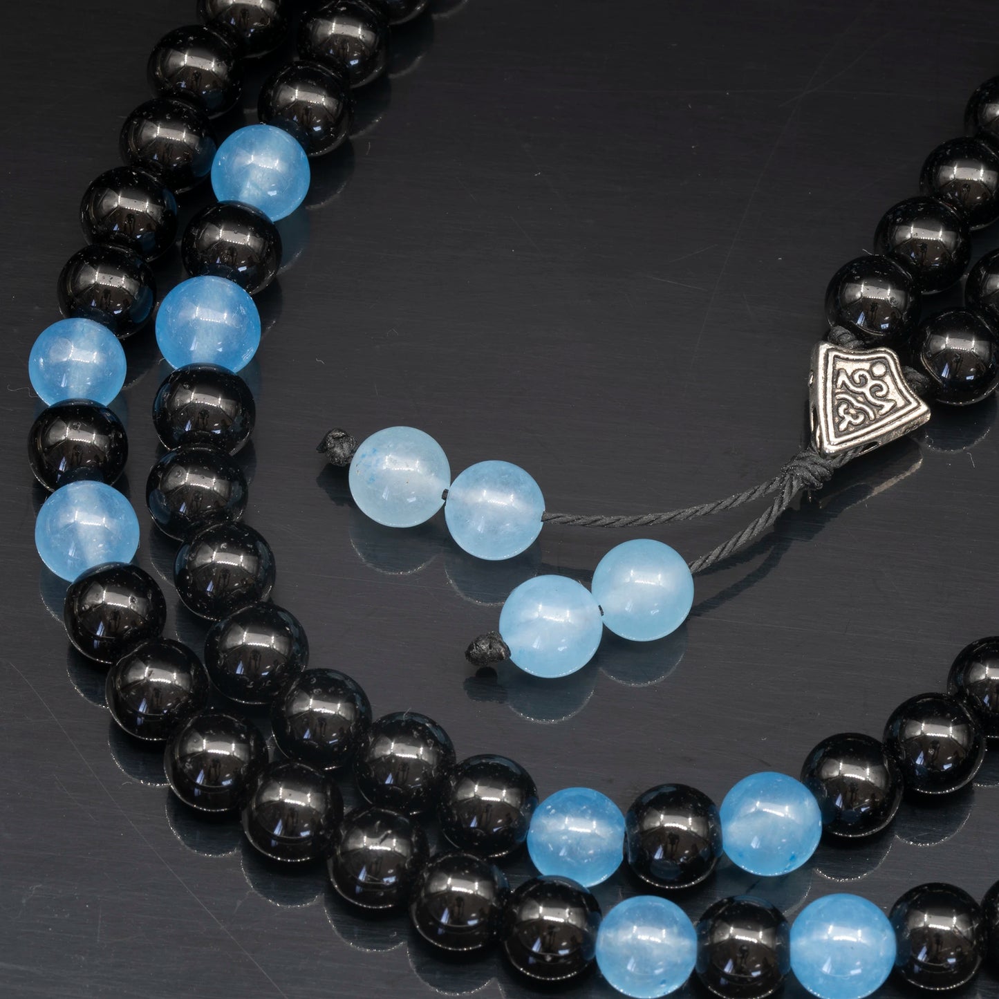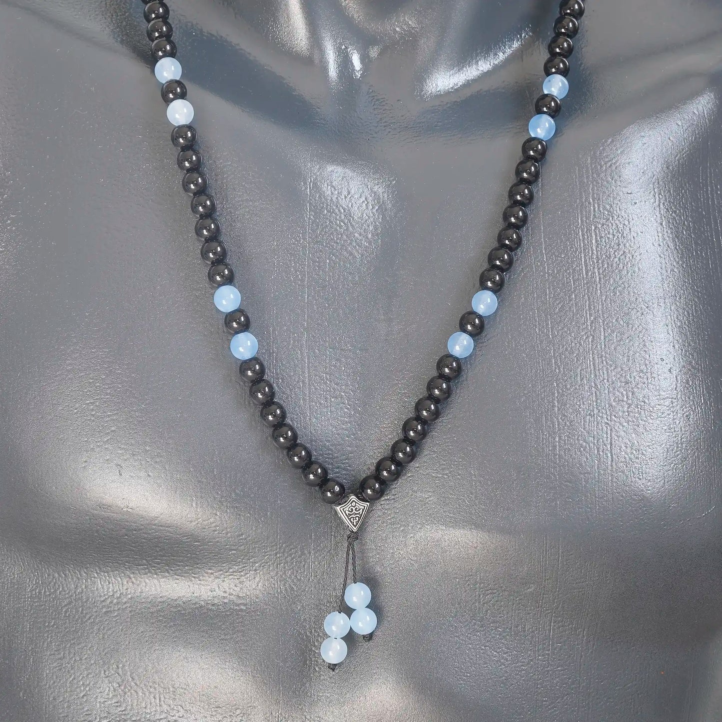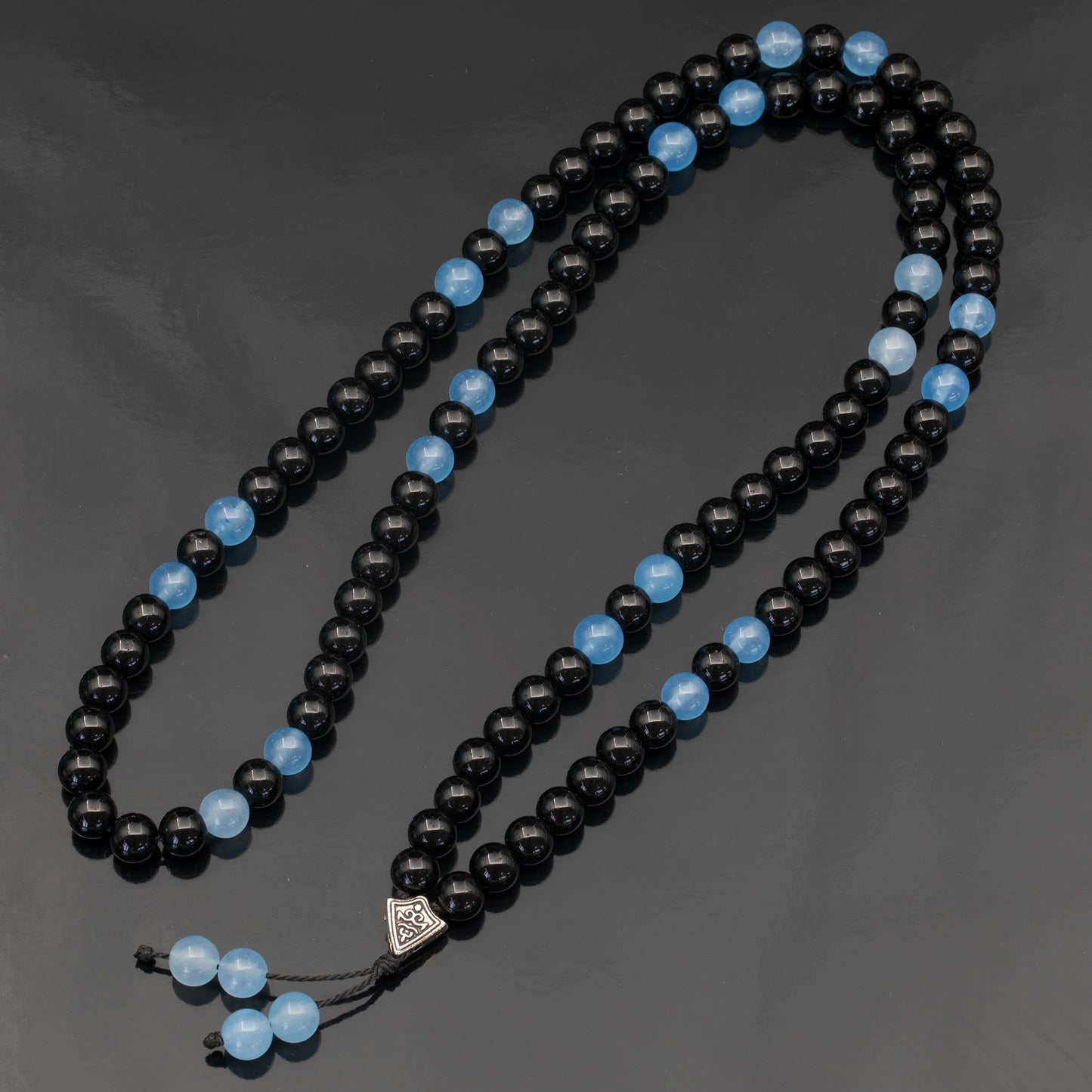 Natural Angelite & Black Onyx Beaded 108 Mala & Rosary Necklace
