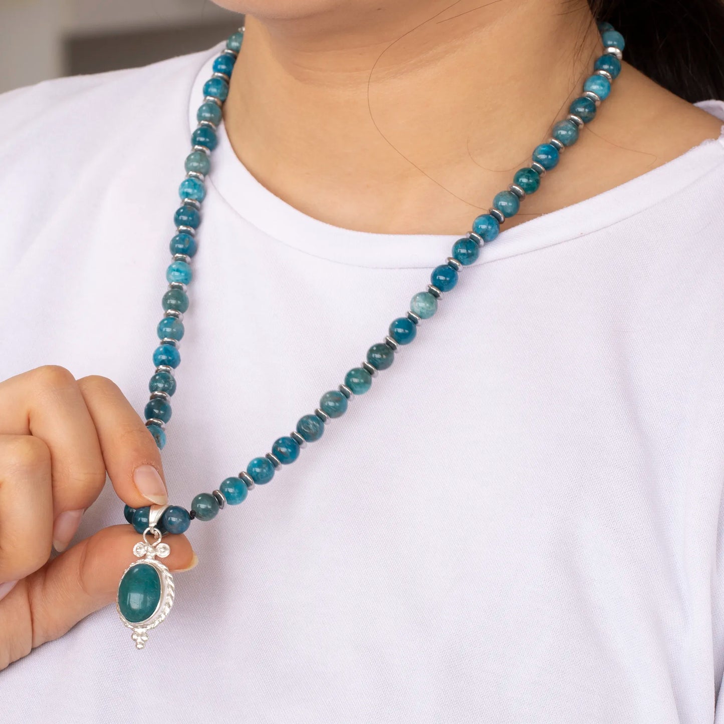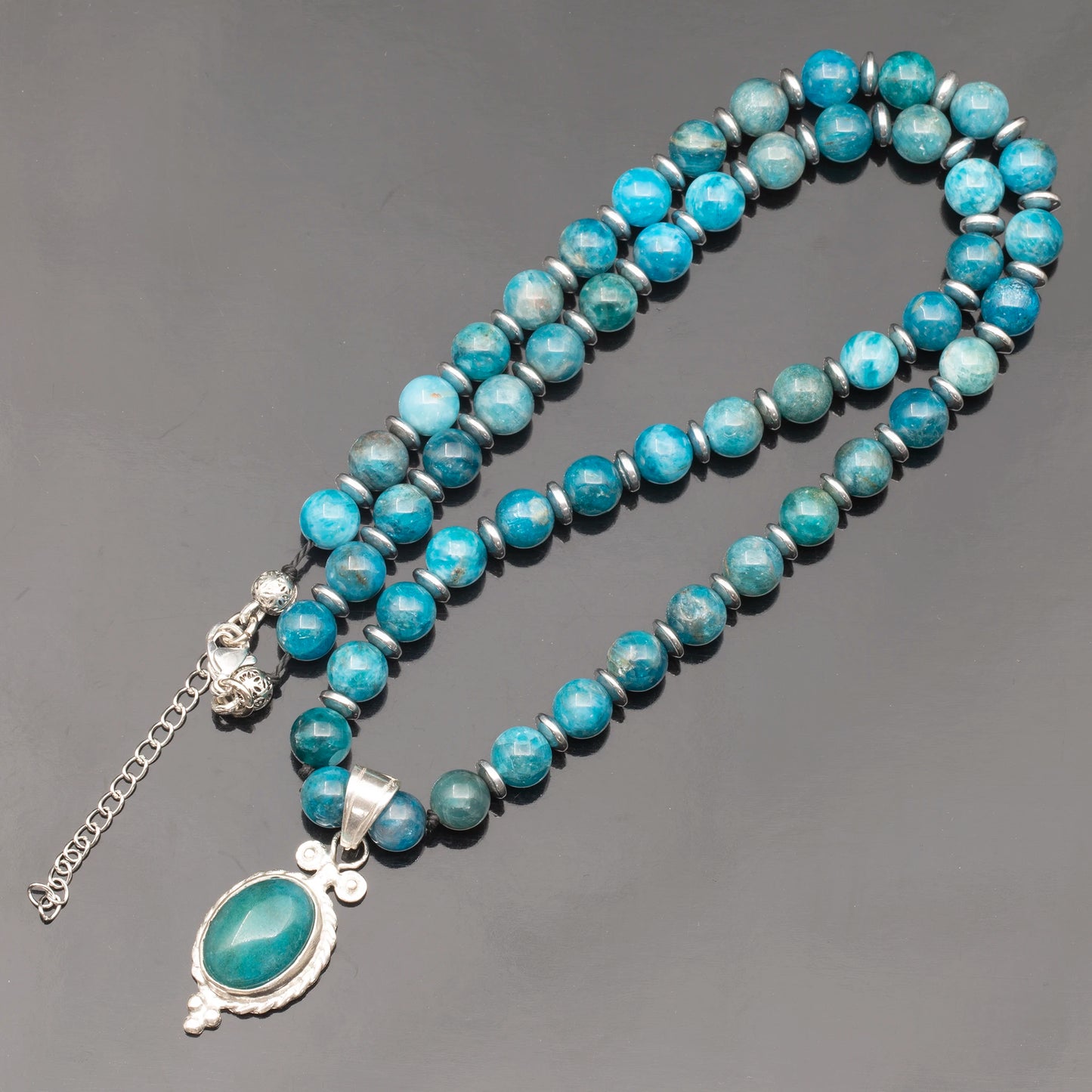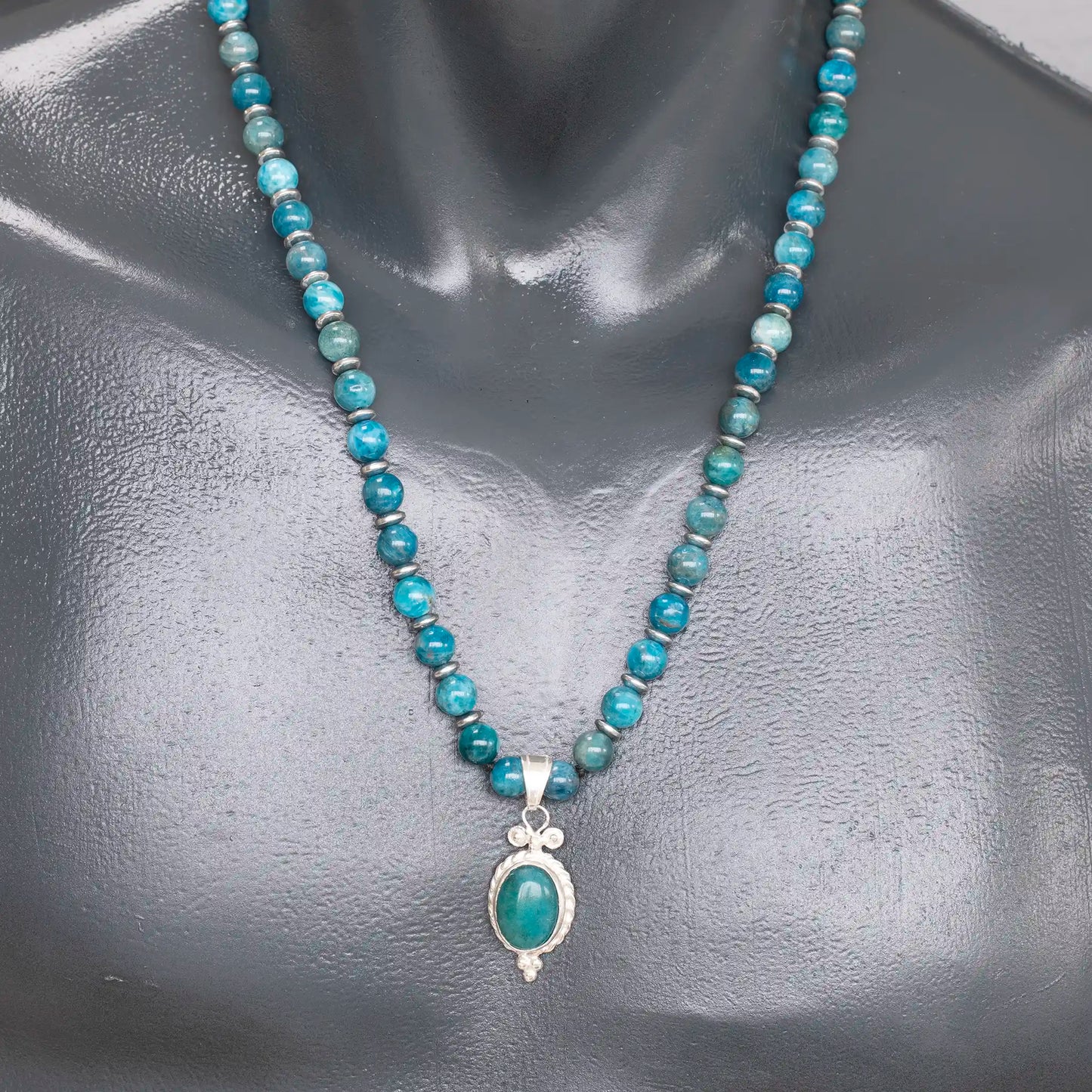 Natural Apatite Silver Pendant, Natural Apatite Beaded Clasp Necklace