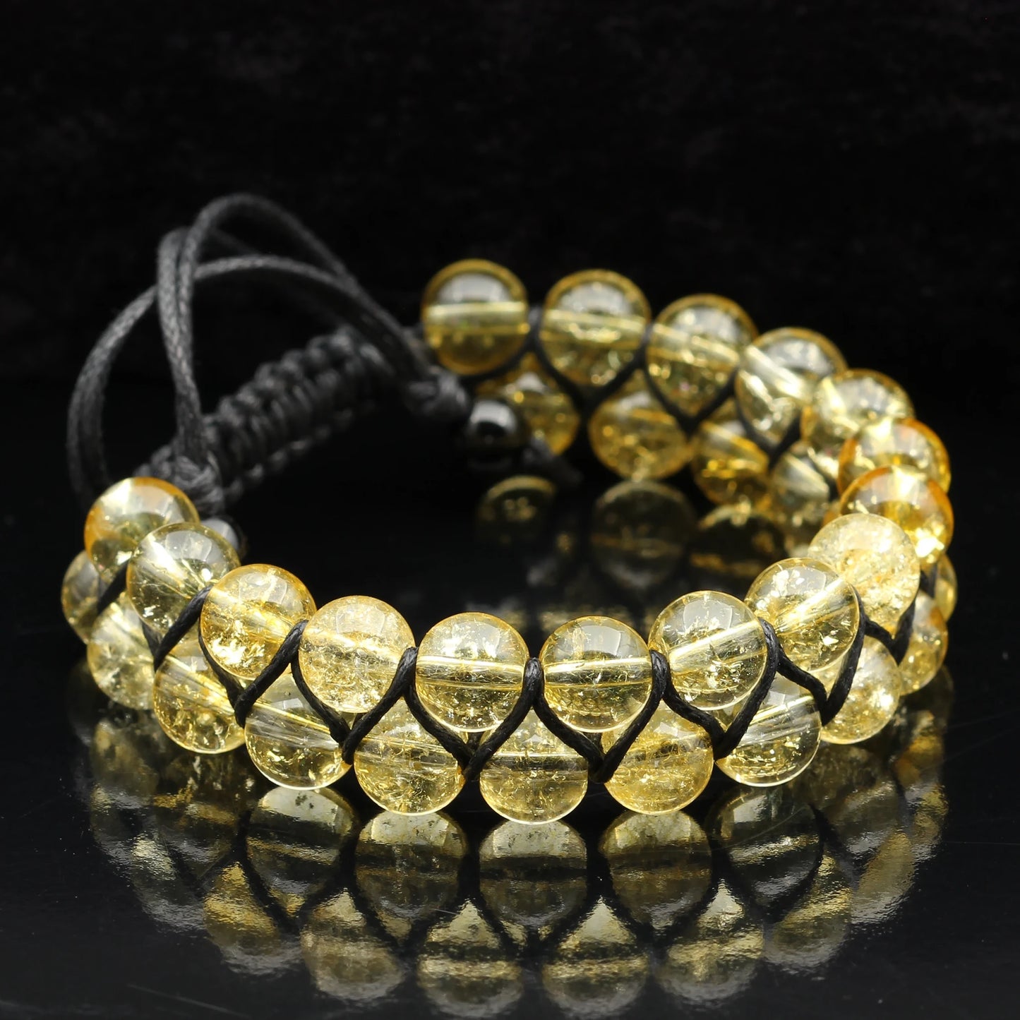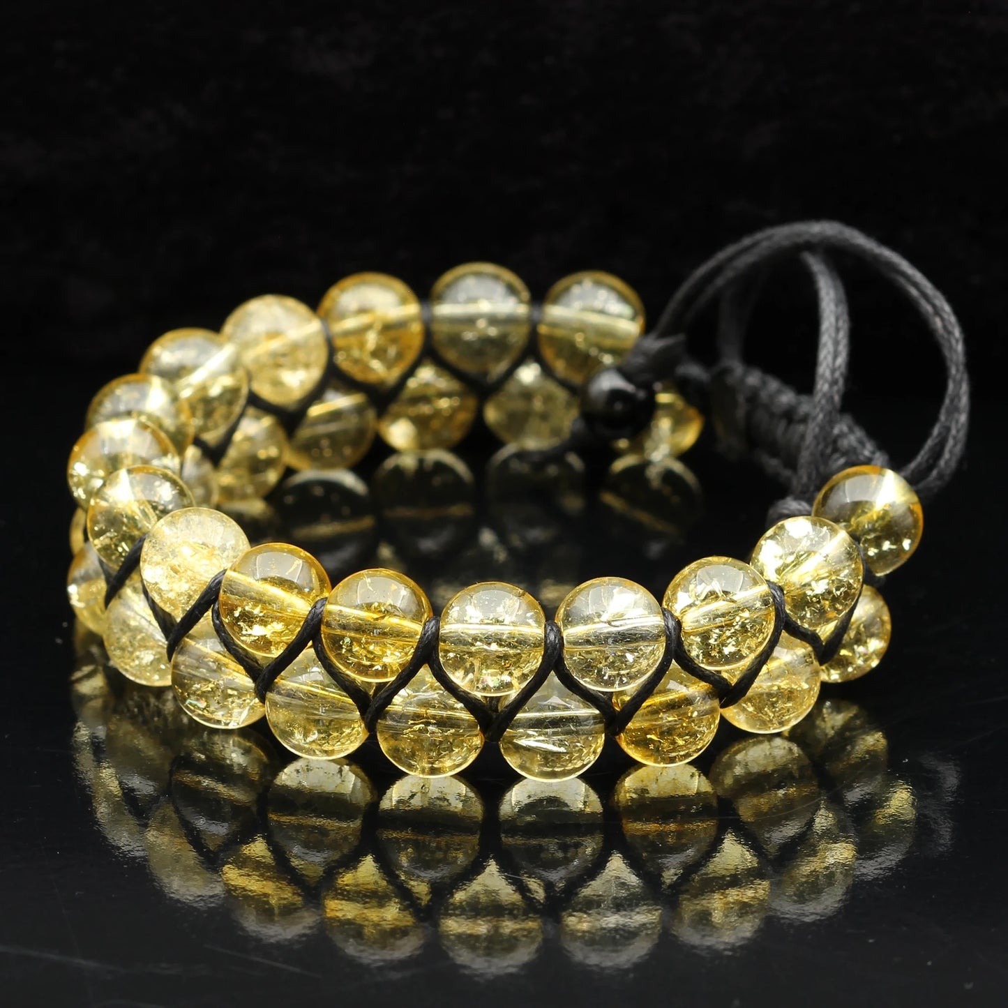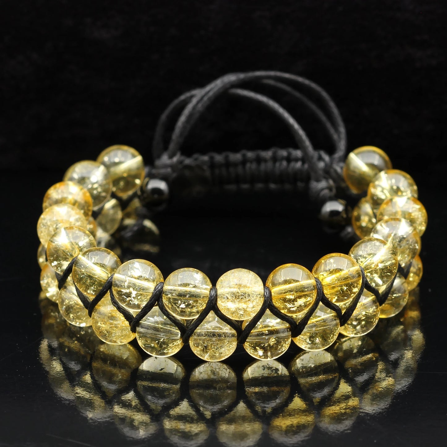 Natural Citrine Beaded Double Row Macrame Bracelet