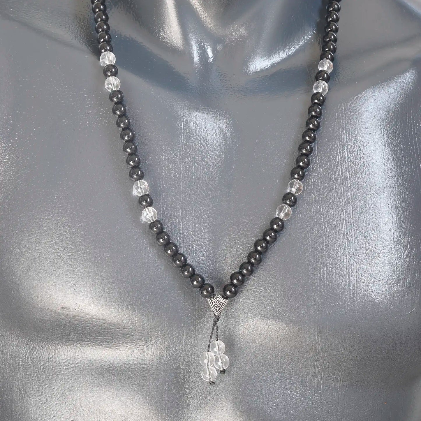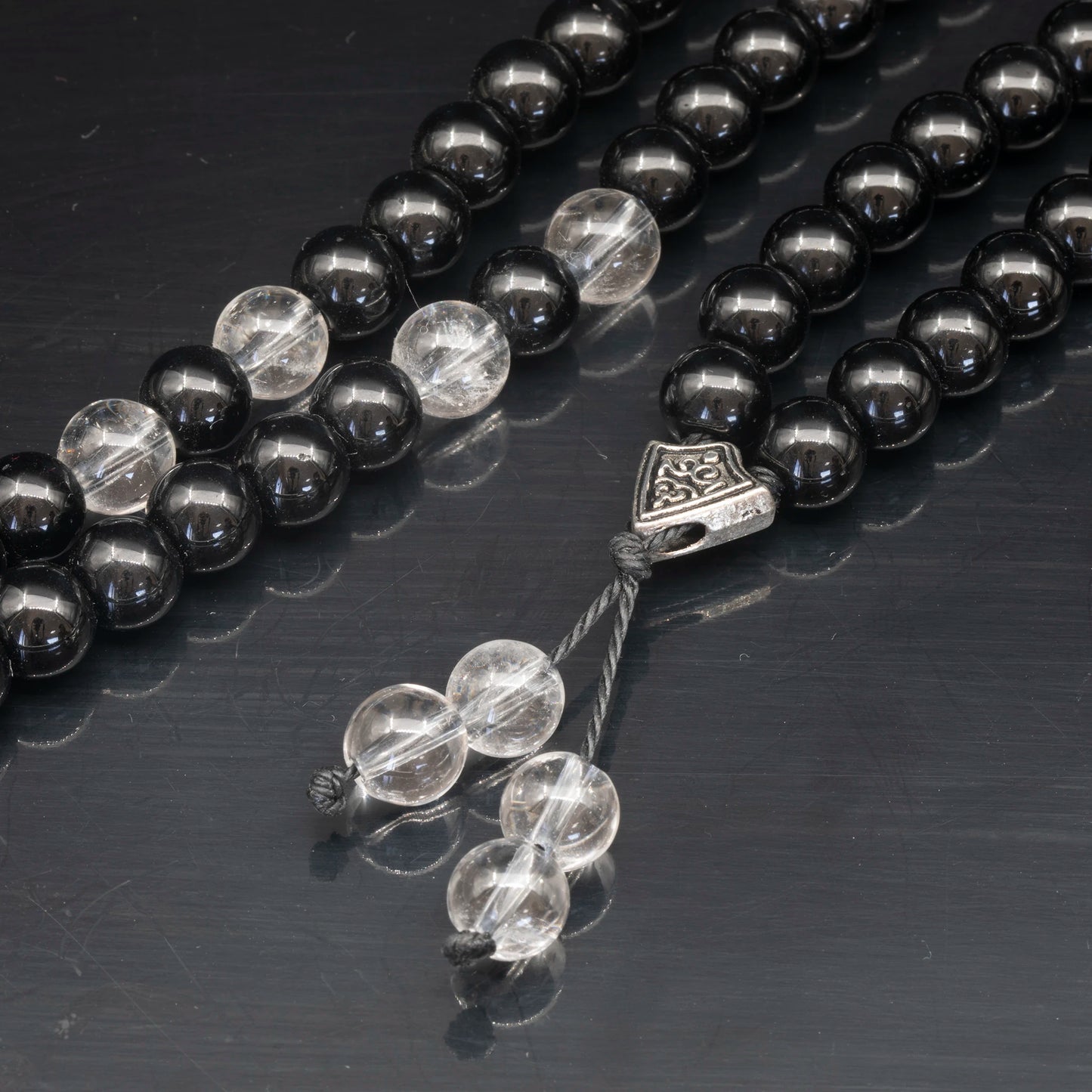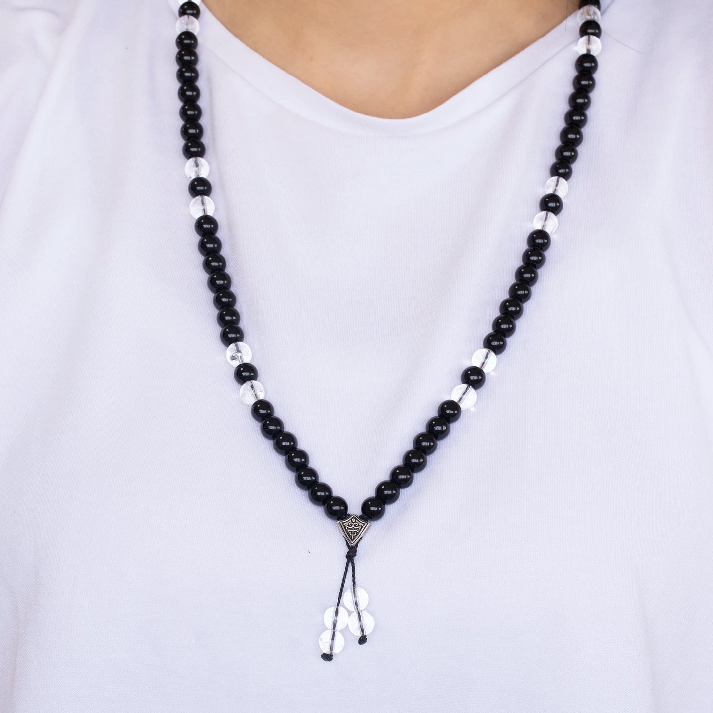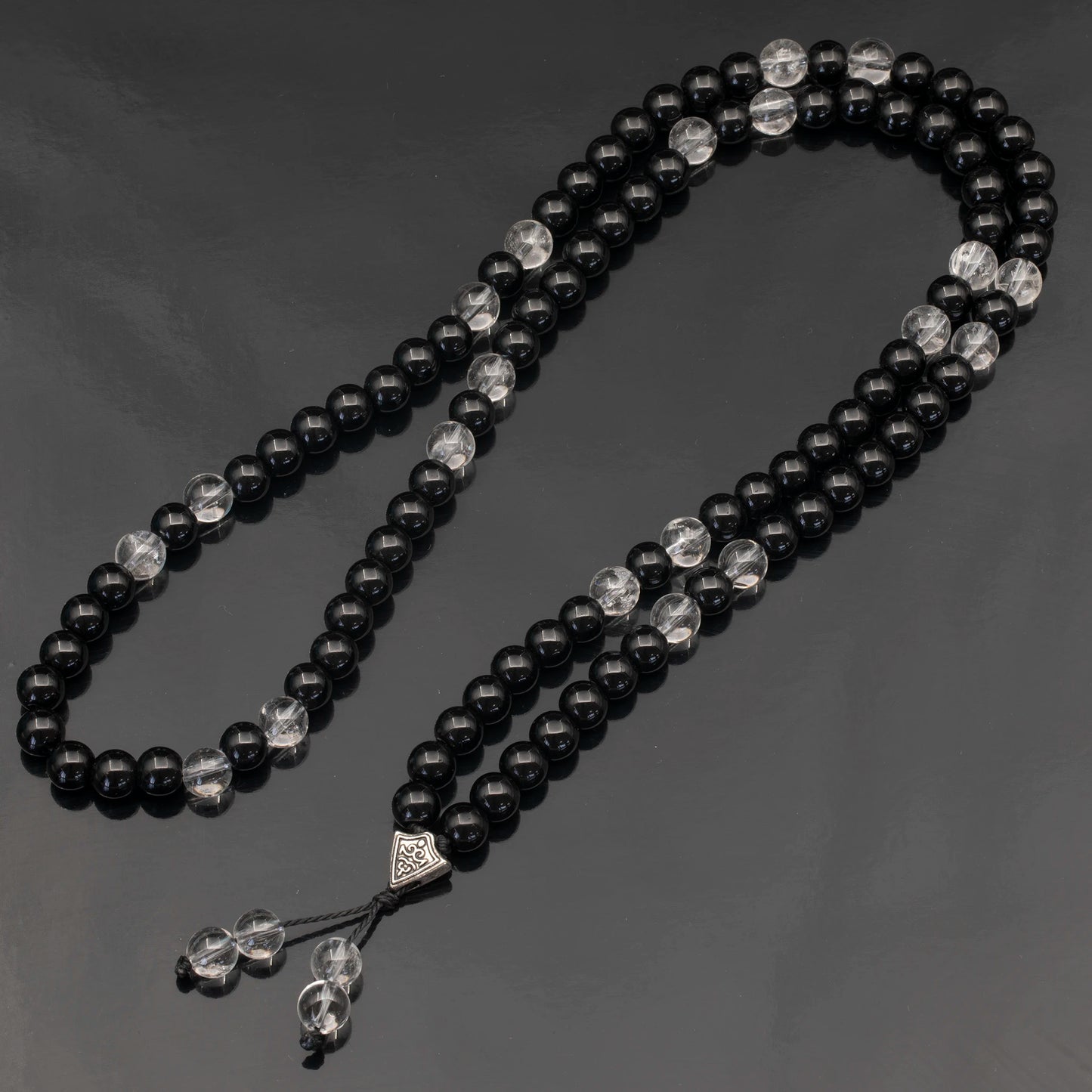 Natural Clear Quartz & Black Onyx Beaded 108 Mala & Rosary Necklace