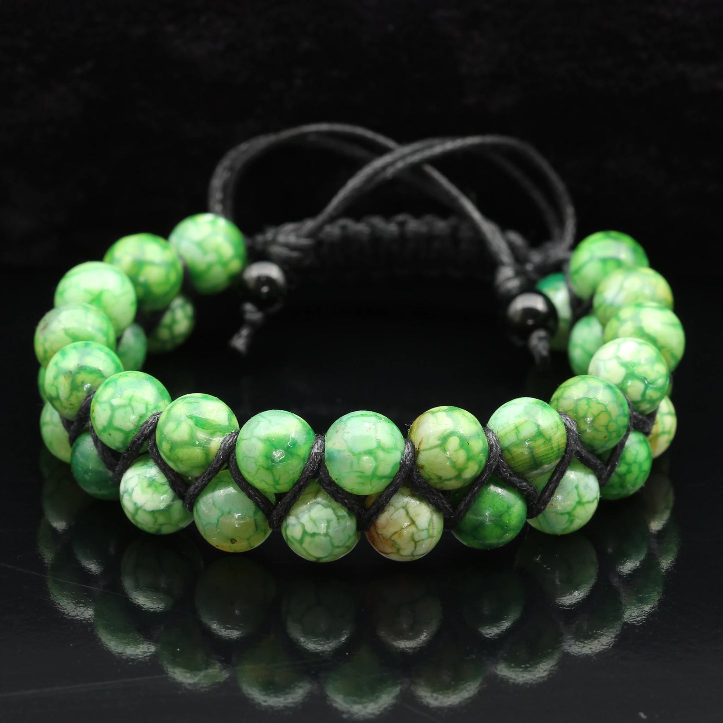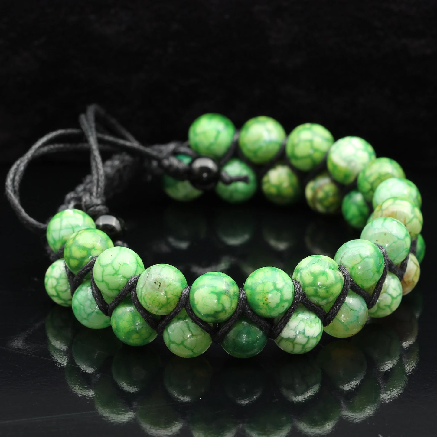 Natural Green Crackle Agate Beaded Double Row Macrame Bracelet
